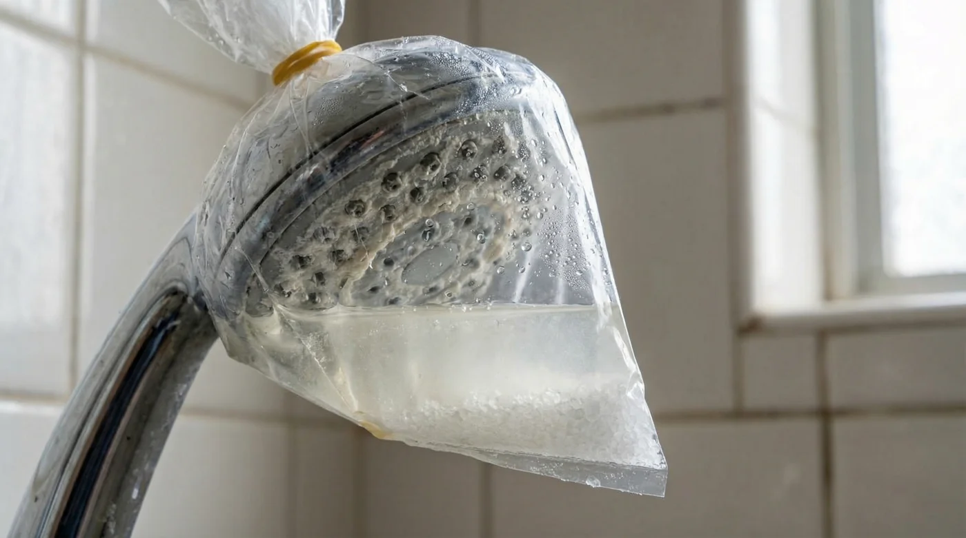 Paket lastiğini kullanarak poşeti armatürün boynuna sıkıca düğümle. Duş başlığının o tıkalı deliklerinin, limon tuzlu ılık suyun içine tamamen gömüldüğünden emin ol. Eğer su seviyesi yetersizse, dışarıdan biraz daha ılık su ekleyebilirsin. İşte yapman gereken fiziksel eylem bu kadar. Işıkları kapatıp uykuya daldığında, sitrik asit o taşlaşmış kireç (kalsiyum karbonat) katmanlarını atomlarına ayırmak için gece mesaisine başlıyor olacak.